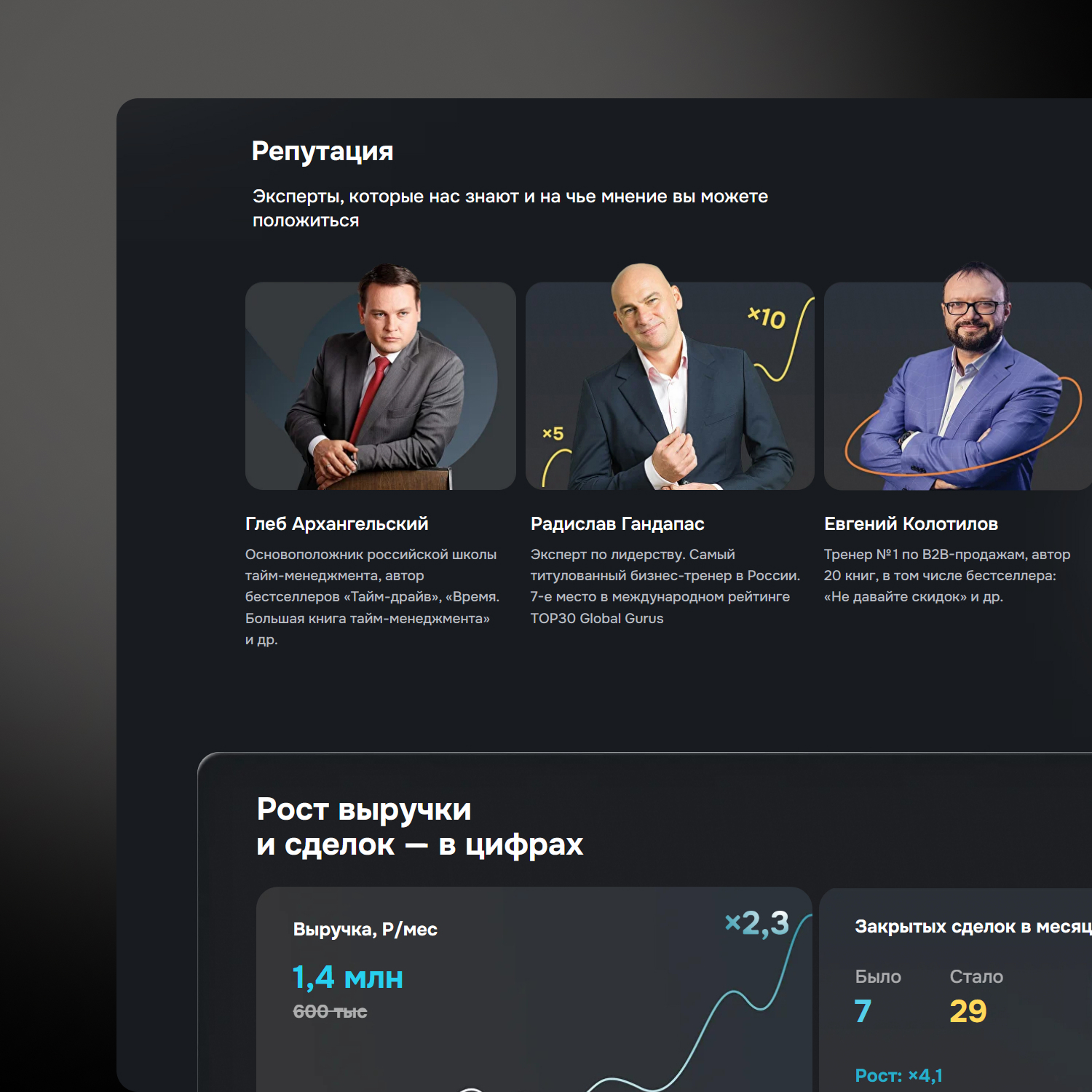 Когда мы начали работу над сайтом TOPsharing.center, у заказчика уже была чёткая услуга и сильная команда. Они занимаются арендой руководителей отделов продаж — помогают бизнесам выстраивать процессы, нанимать менеджеров и выходить на план по продажам. Но сайт не отражал системности, с которой они работают. Поэтому задача стояла не просто сделать красивый лендинг, а выстроить цифровую витрину, которая говорит на том же языке, что и сам продукт: спокойно, структурно, без суеты.